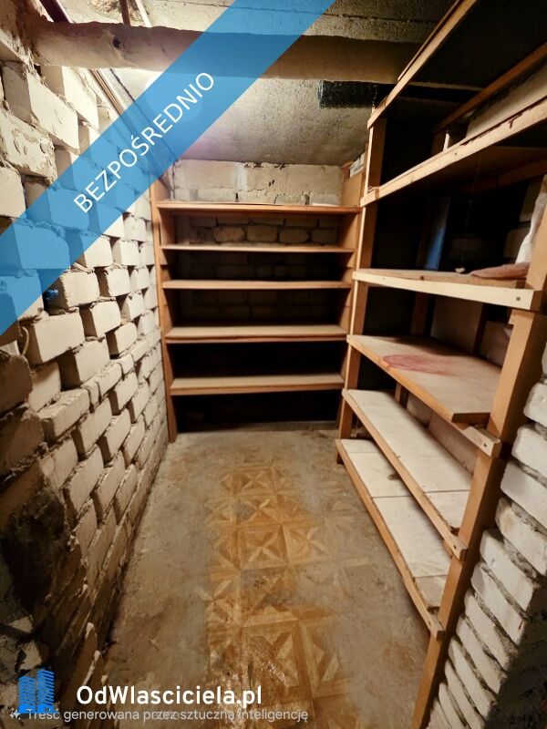 W cenie mieszkania znajduje się również własna piwnica – dodatkowa, zamykana przestrzeń magazynowa wyposażona w drewniane półki.