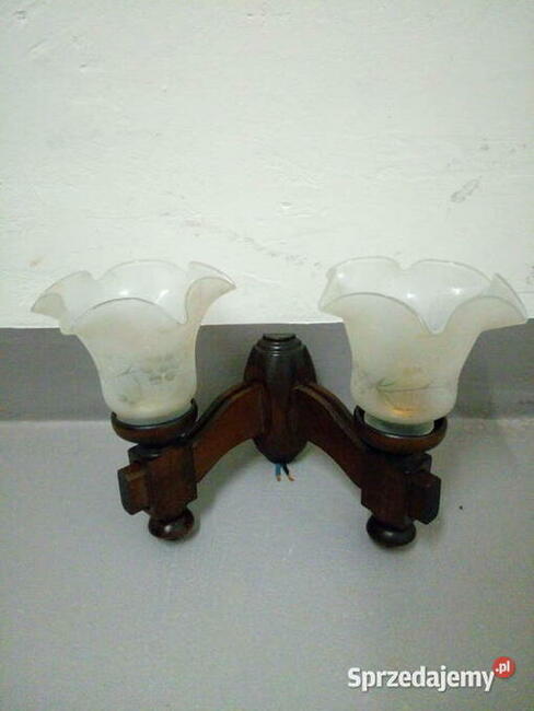 Kinkiet drewniany z mlecznymi kloszami,stan bardzo dobry,sprawny,jest możliwość zawieszenia by światło padało do góry ...