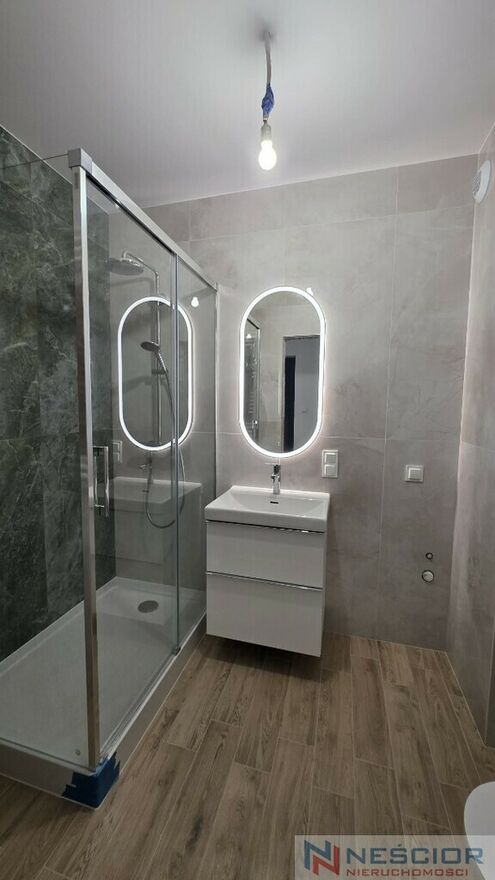- nowo wykończona łazienka z prysznicem, w pozostałej części