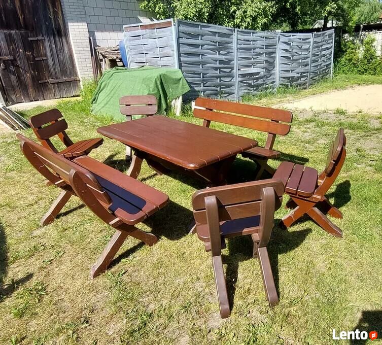 Sprzedam zestaw mebli na taras lub do ogrodu. Meble wykonane z grubego drewna, ciężkie idealne na długie lata.Zestaw zawiera stol, dwie ławki oraz cztery krzesła Zapraszam zainteresowane osoby do kontaktu i zakupu.